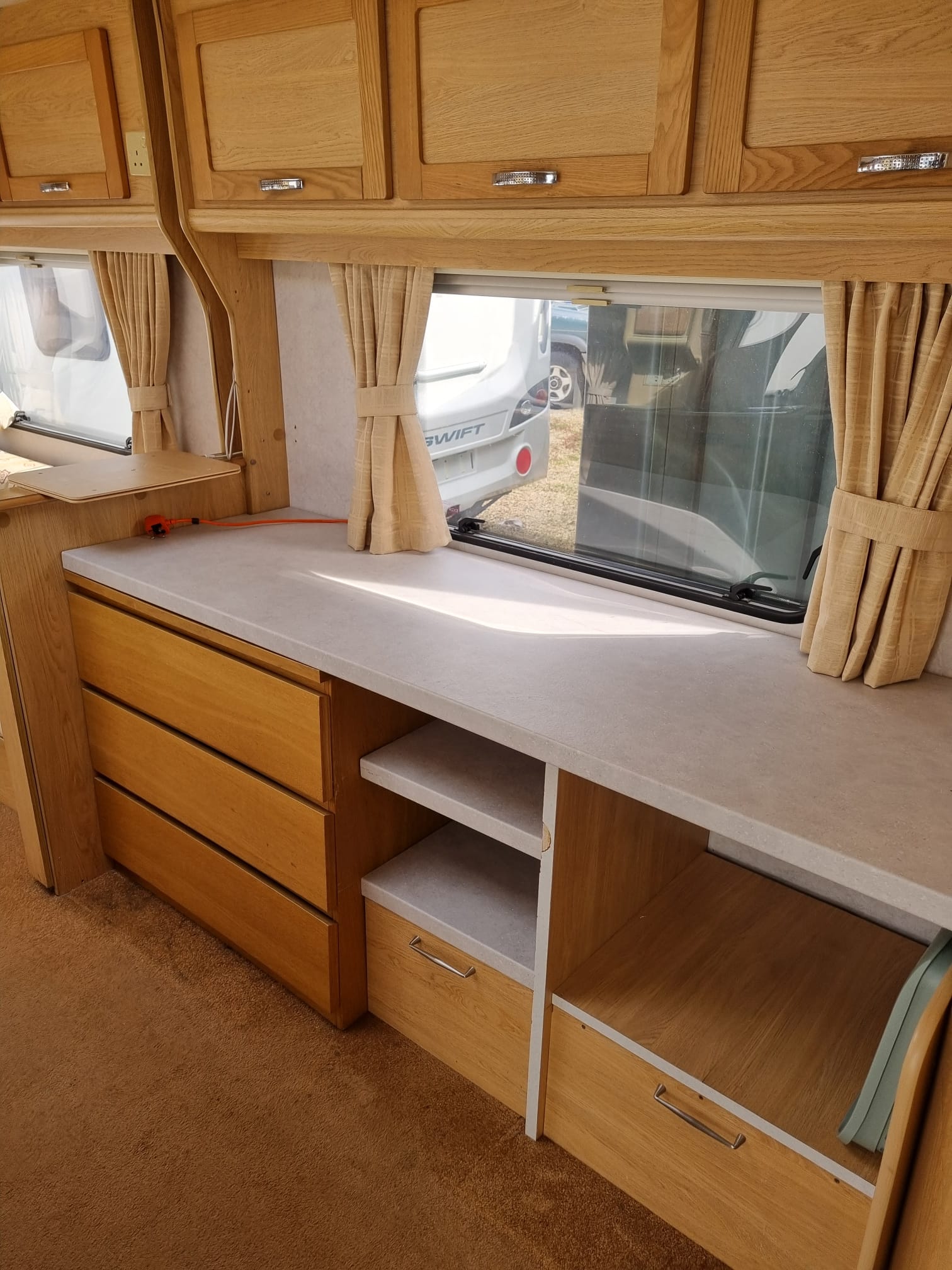 • 2 Berth  (This caravan has been converted from a 4 berth to a 2 berth to make more area space with work surface and drawers)